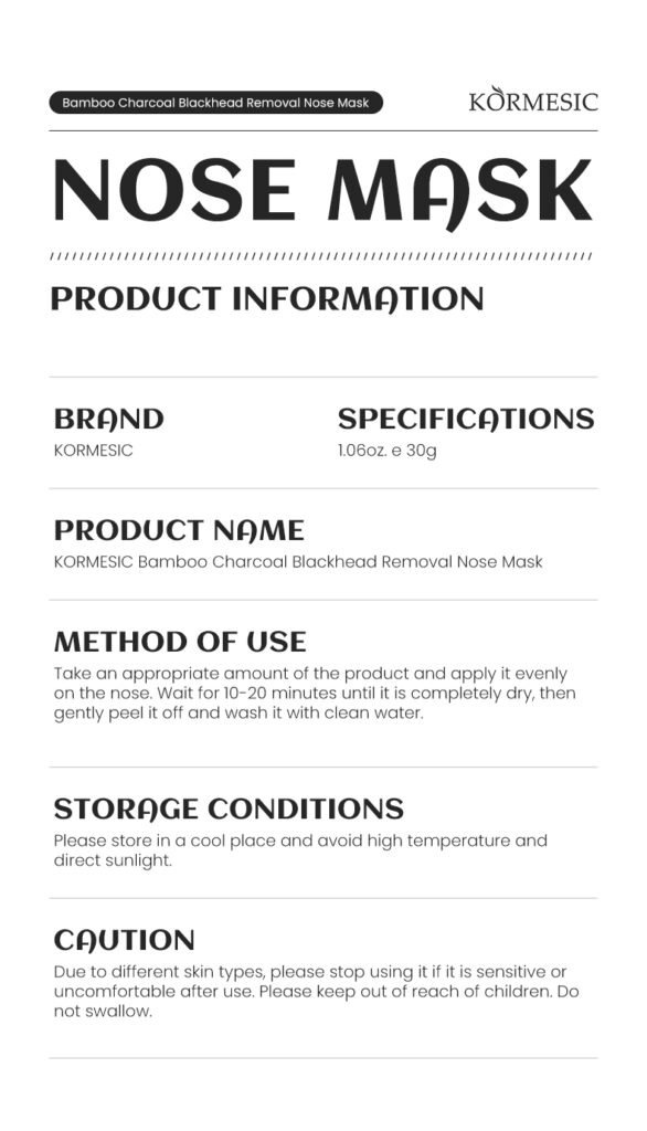 KORMESIC — Bamboo Charcoal Nose Mask: deeply cleanses pores, removes blackheads and excess oil, and minimizes pores, leaving the nose skin clean and smooth.