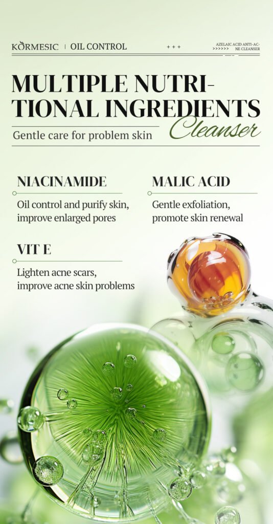 KORMESIC — Очищающее средство с азелаиновой кислотой мягко удаляет излишки жира и загрязнения, подавляет появление акне и успокаивает кожу, делая её чистой и гладкой