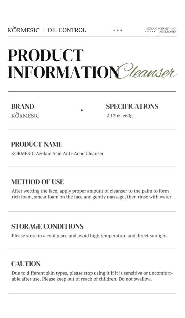 | Название | KORMESIC Azelaic Acid Acne-Clearing Cleanser GB |