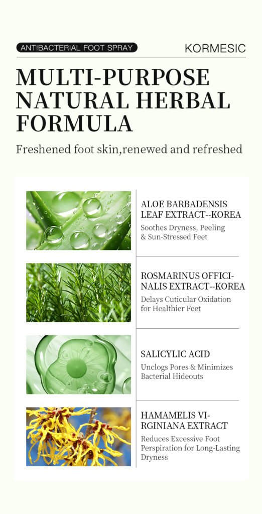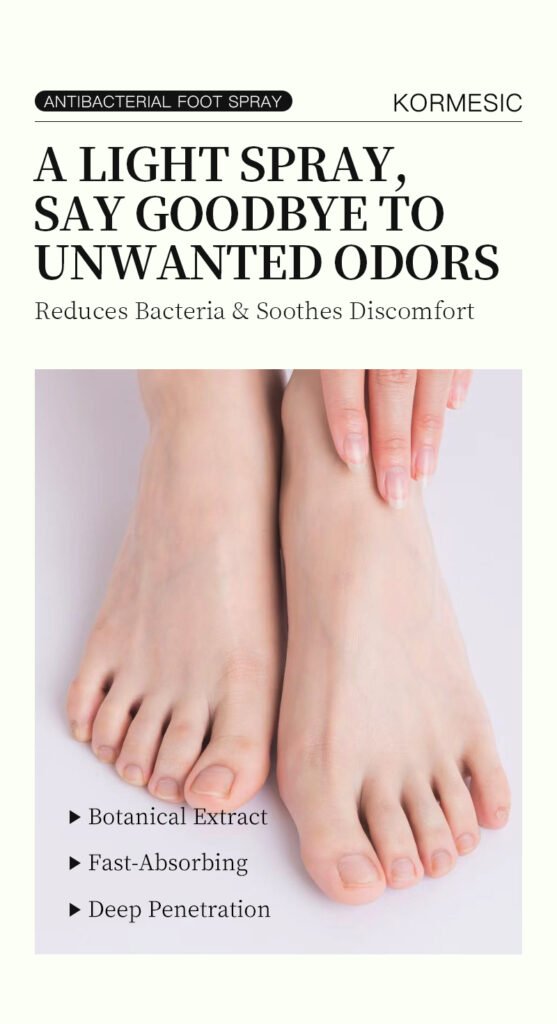 KORMESIC — Спрей для ног с антибактериальными компонентами и растительными экстрактами, контролирует бактерии, предотвращает неприятный запах и снимает усталость ног