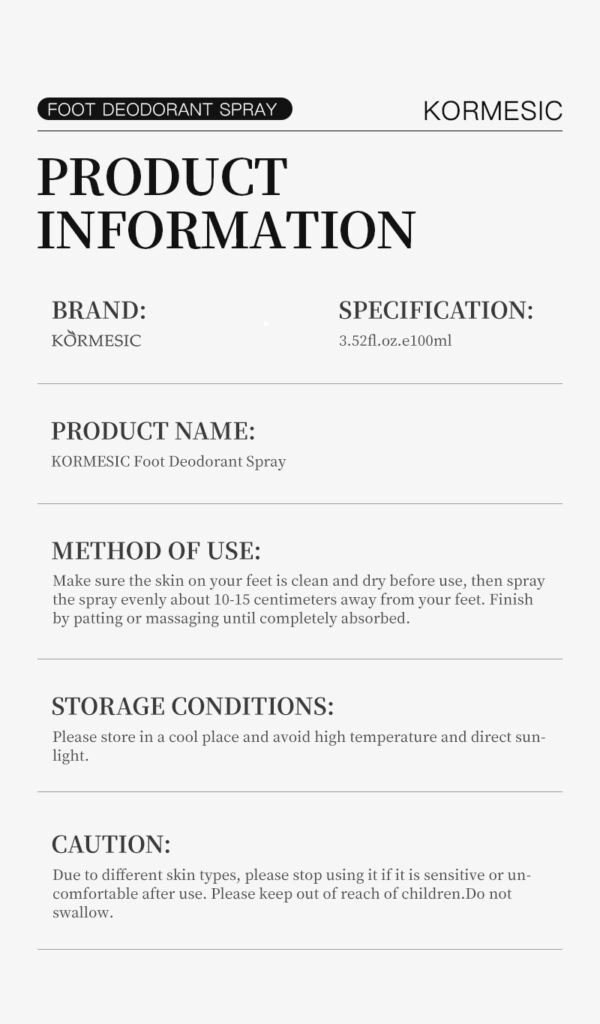 | Название | KORMESIC Foot Deodorant Spray |