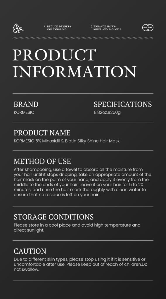 KORMESIC  — Питательная маска для волос с миноксидилом и биотином, помогает укрепить волосы и придать им здоровый блеск